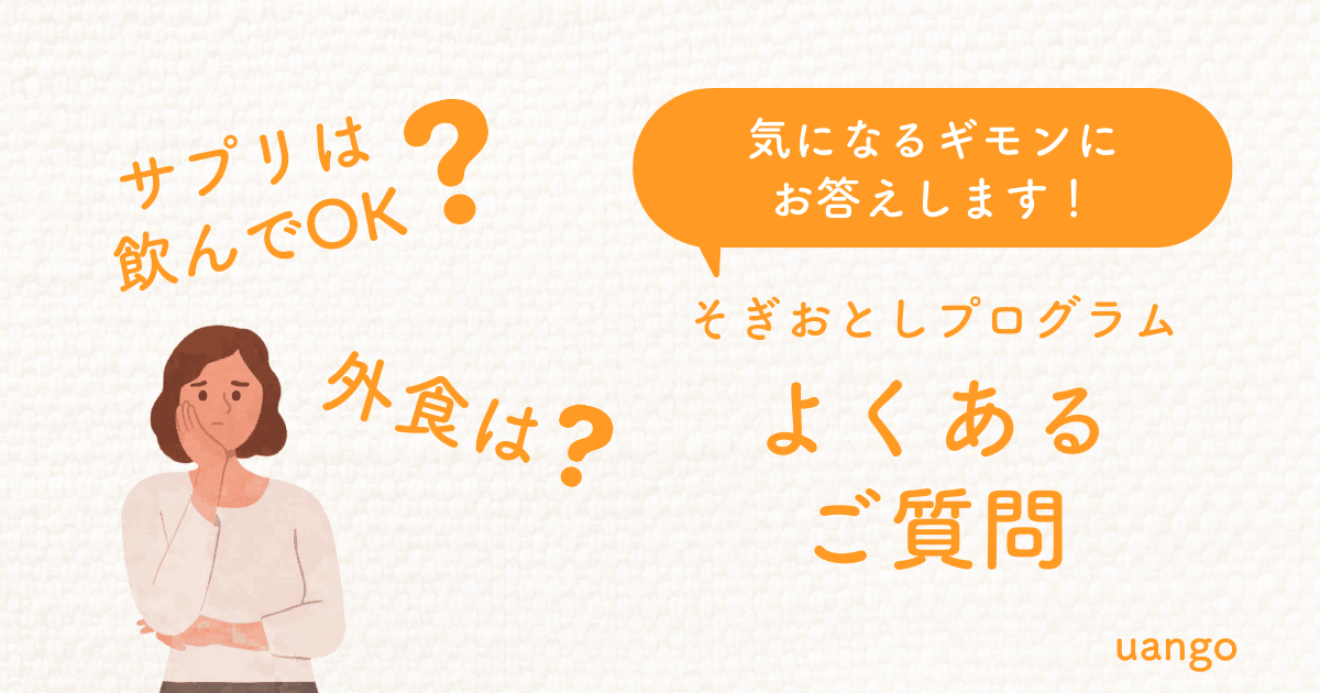 UANGOのプログラムでは身体に刺激があるものを摂取しないことで、胃腸を休め身体を内側からスッキリさせることを目指します。これによってさまざまな不調が改善されますので、この期間は消化に負担の大きいお酒やカフェインを含むものなどはお控えください。