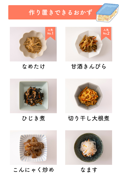 作り置きできるおかずの例